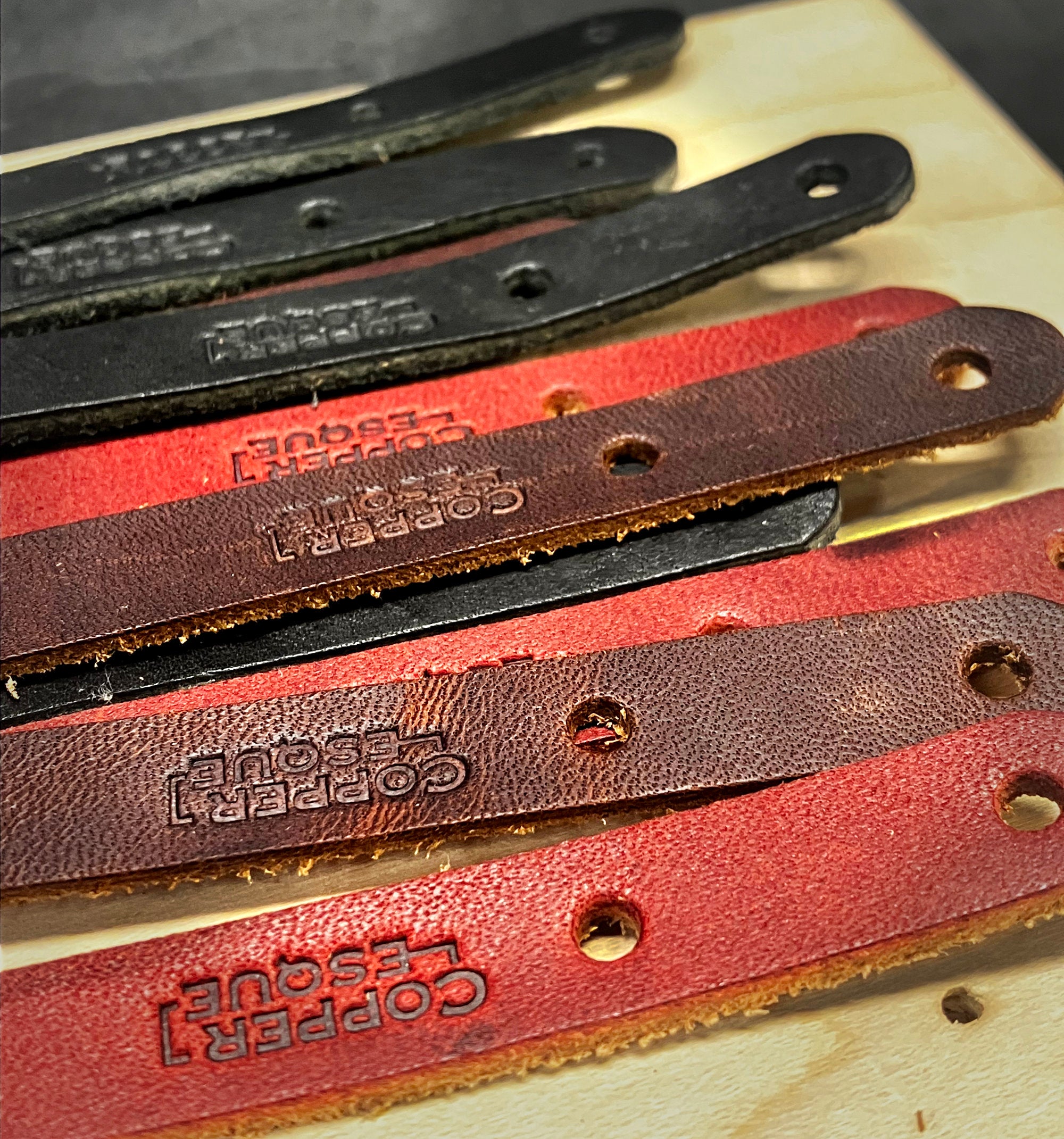 Rustico Leather Valet Tray with black corner rivets provides the perfect catchall to keep your valuables in order. Use it at the bedside table or on the camper counter...
